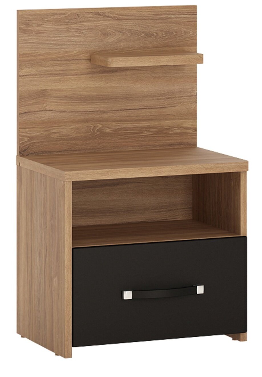 The Monaco collection offers a luxurious and rich bedroom design. The modern, elegant bedside table along with the other units of the Monaco series will make your oasis original. The oak decor along with the dark front part brings the piece to life. The drawer has a metal handle and soft-close system, which makes using the cabinet convenient and silent. The nightstand is made of laminated particle board. The front part is made of MDF.