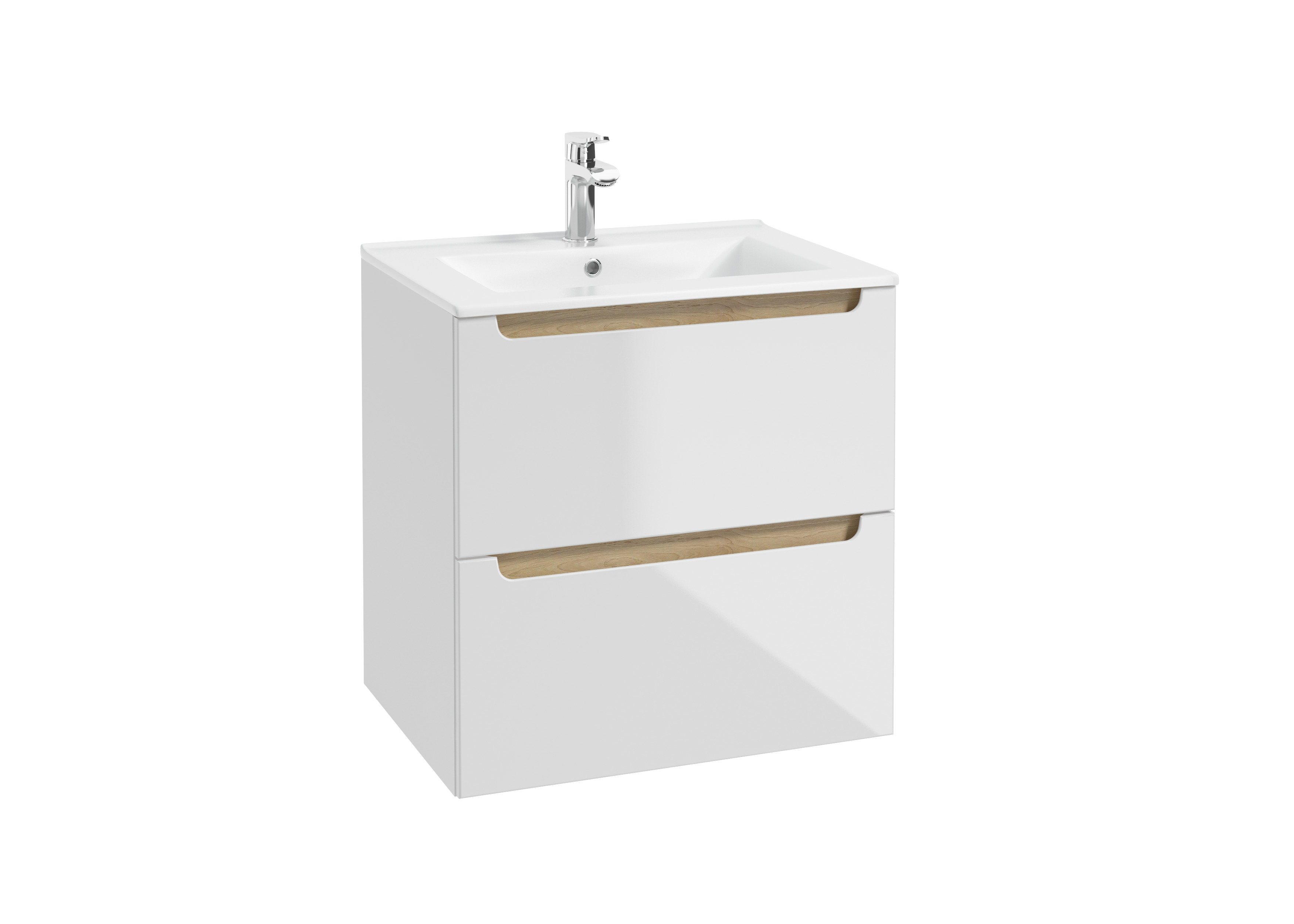 Vonios spintelė su praustuvu Deftrans Stilla D60 + Plan 60, ąžuolo/balta, 45 cm x 60 cm x 60 cm