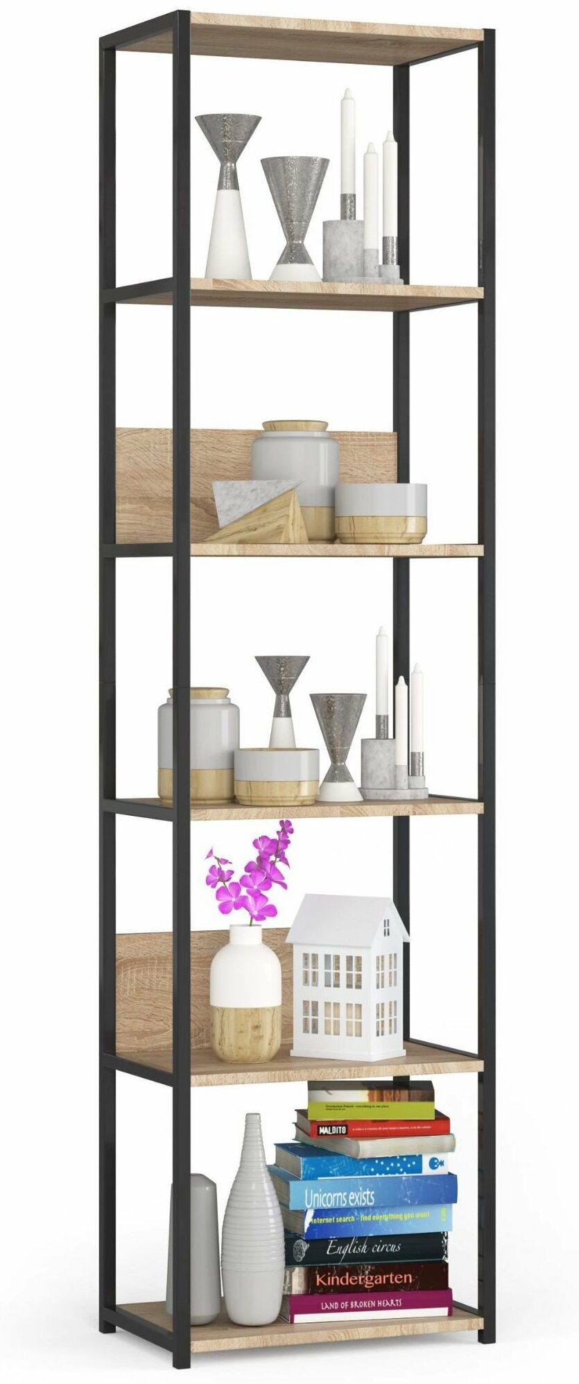 Knygų lentyna Akord Loft 700, juoda/sonoma ąžuolo, 32 cm x 70 cm x 192 cm