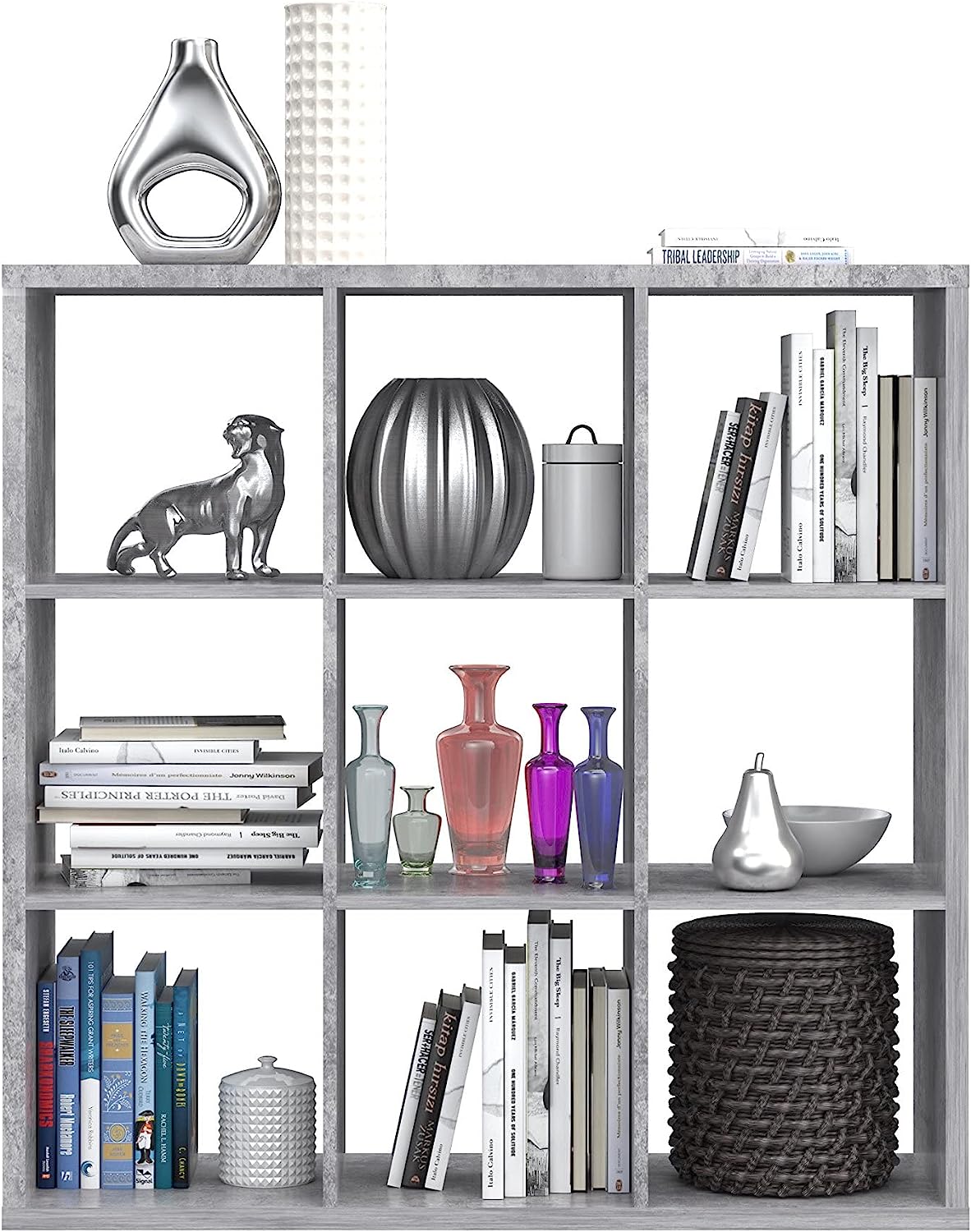 MAURO knygų lentyna yra minimalistinis korpusas pilkos spalvos, imituojantis betoną.