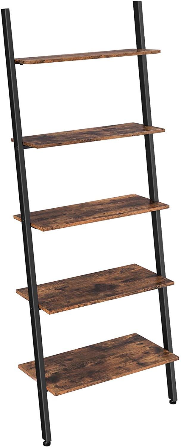 MIESTIŠKAS PALIETIMAS: VASAGLE kūrybingi dizaineriai įkvėpti pramoninių baldų ir sukūrė šią amžiną lentyną, primenančią kopėčias. Su kaimiško žavesio prieskoniu jie sukūrė ypatingą baldą, kuris praturtina kiekvienus namus. PALINKUSIS DIZAINAS: Nors unikalus šios lentynos pasviręs dizainas suteikia palinkusio vaizdo, ji iš tikrųjų tvirtai pritvirtinta prie sienos varžtais viršuje, užtikrinant maksimalų stabilumą ir tai, kad visi lentynos sluoksniai remiasi į sieną 90° kampu. PRAKTIKA DAUGIAU LYGIŲ: Knygų lentyna turi 5 skirtingo dydžio sluoksnius rusvai ruda spalva, ant kurių galite dėti dekoracijas, augalus ar kitus daiktus iki 55 svarų. Tvirtas geležinis rėmas (0,8" x 1,6" perimetras) suteikia puikų atramą. BE RŪPESČIŲ SURINKIMAS: Dėl išsamių instrukcijų ir aiškiai apibrėžtų komponentų šią kopėčių lentyną galima surinkti be jokių problemų naudojant pridedamą įrankį.