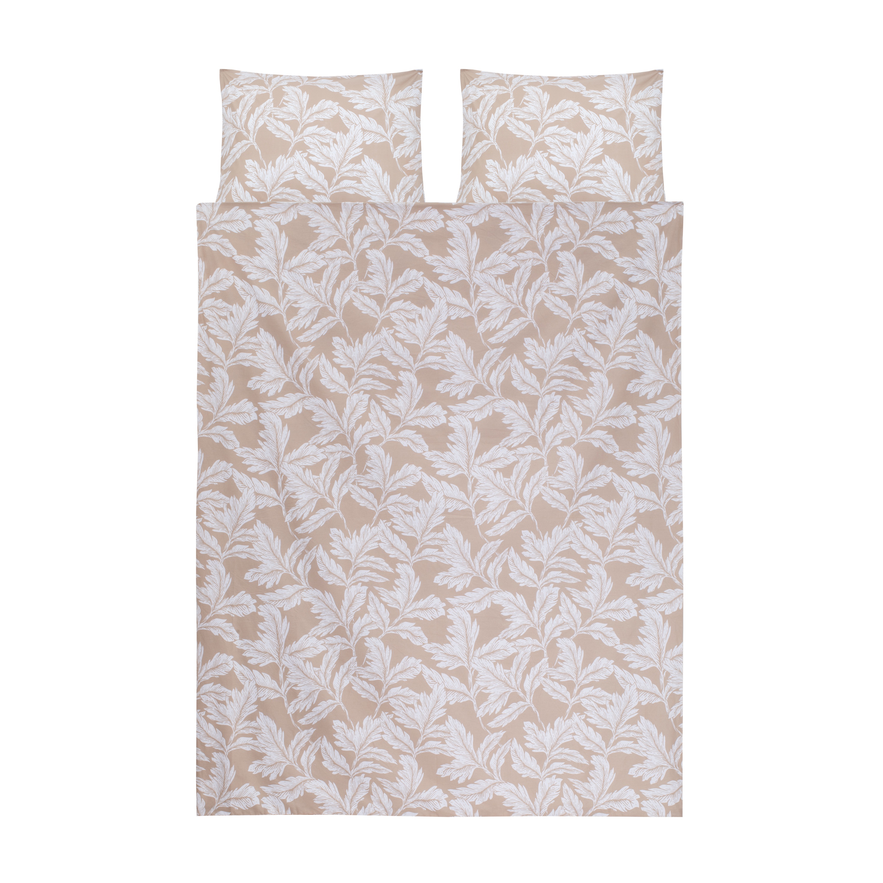 Spalvos ir dizainas: šis komplektas pasižymi smėlio ir rudos spalvų deriniu su subtiliais augalų motyvais, kurie suteikia jūsų miegamajam natūralumo ir elegancijos. Modernus ir stilingas dizainas puikiai tinka tiek šiuolaikiniam, tiek klasikiniam interjerui.