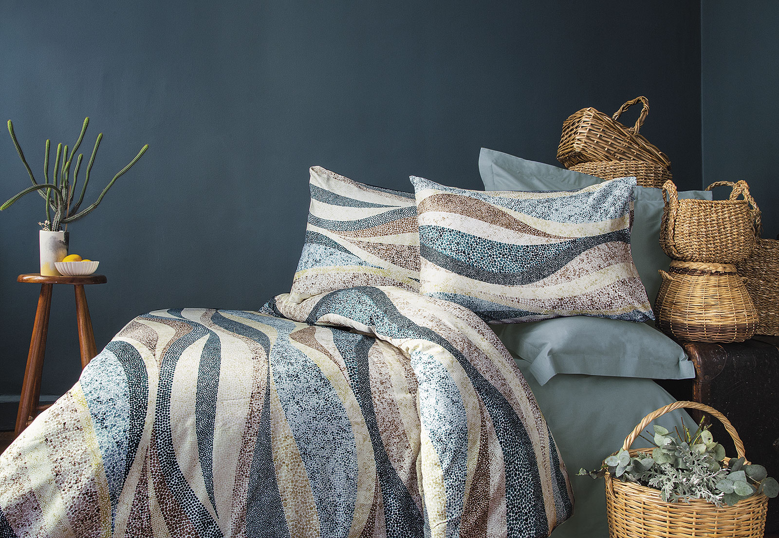 Ar mėgstate švelnią ir ramią spalvų paletę, ar drąsesnes energingas kombinacijas, šis komplektas gali pasiūlyti daugybę variacijų. Abstraktūs geometriniai raštai suteiks miegamajam ypatingą charakterį ir išskirtinumą.