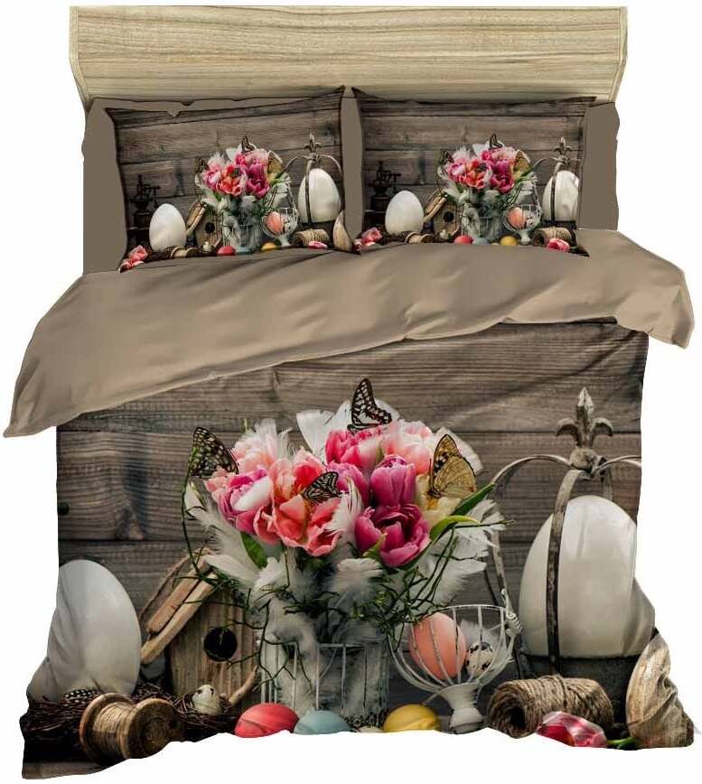 Kalėdinis patalynės užvalkalų komplektas Mijolnir 429 178PRL1179, rudas/baltas, 160 x 220 cm
