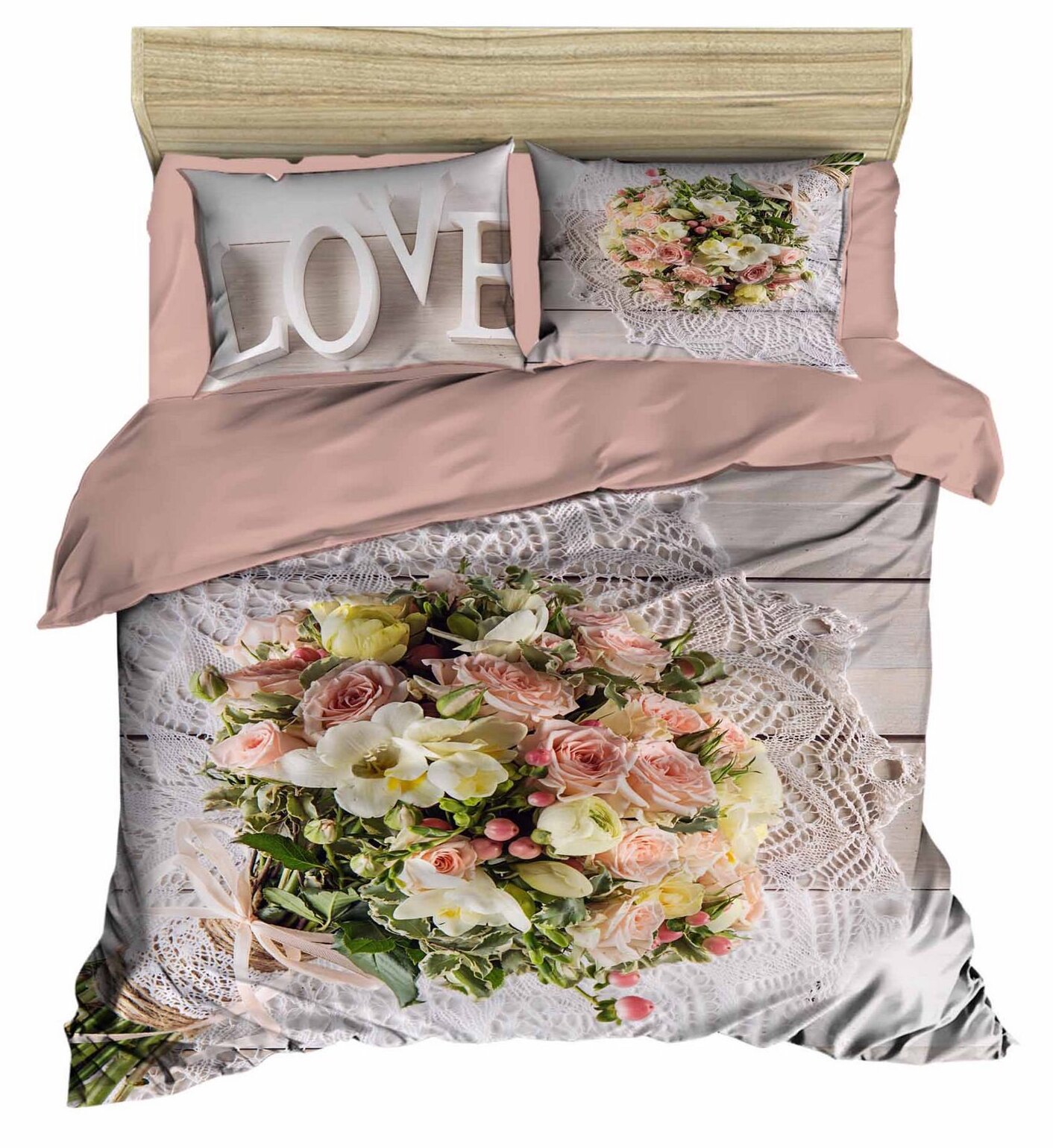 Kalėdinis patalynės užvalkalų komplektas Mijolnir 178PRL1292, balta/raudona/rožinė, 200 x 220 cm