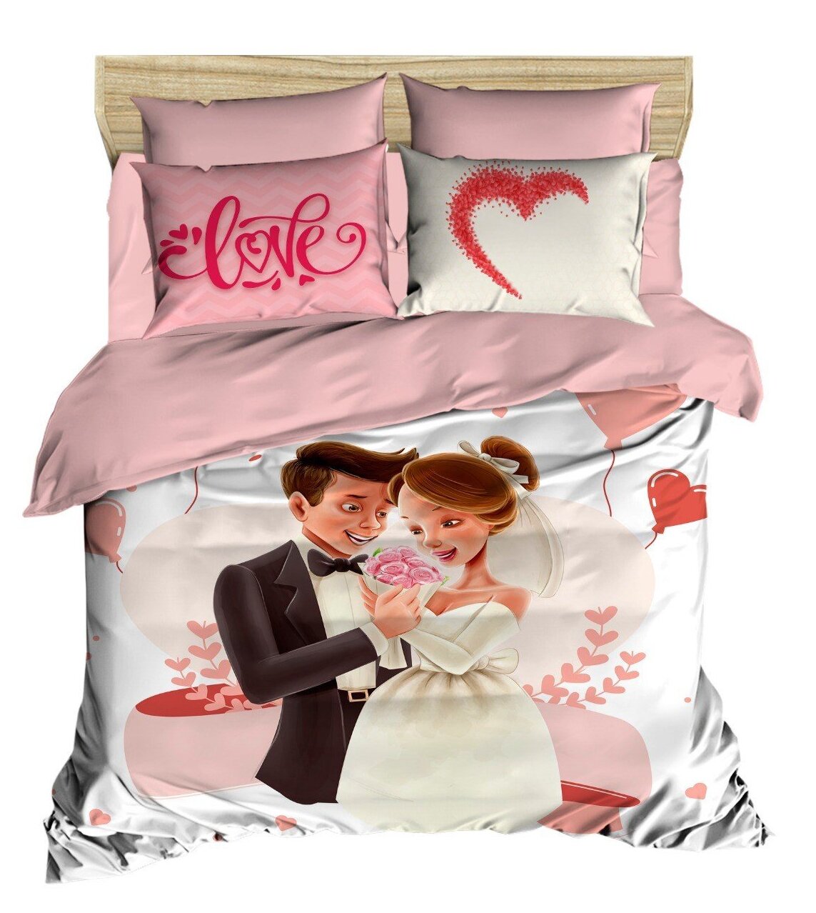 Patalynės užvalkalų komplektas Mijolnir 214 178PRL1387, baltas/rožinis, 160 x 220 cm | Interjeras, baldai, tekstilė | Senukai.lt | 2