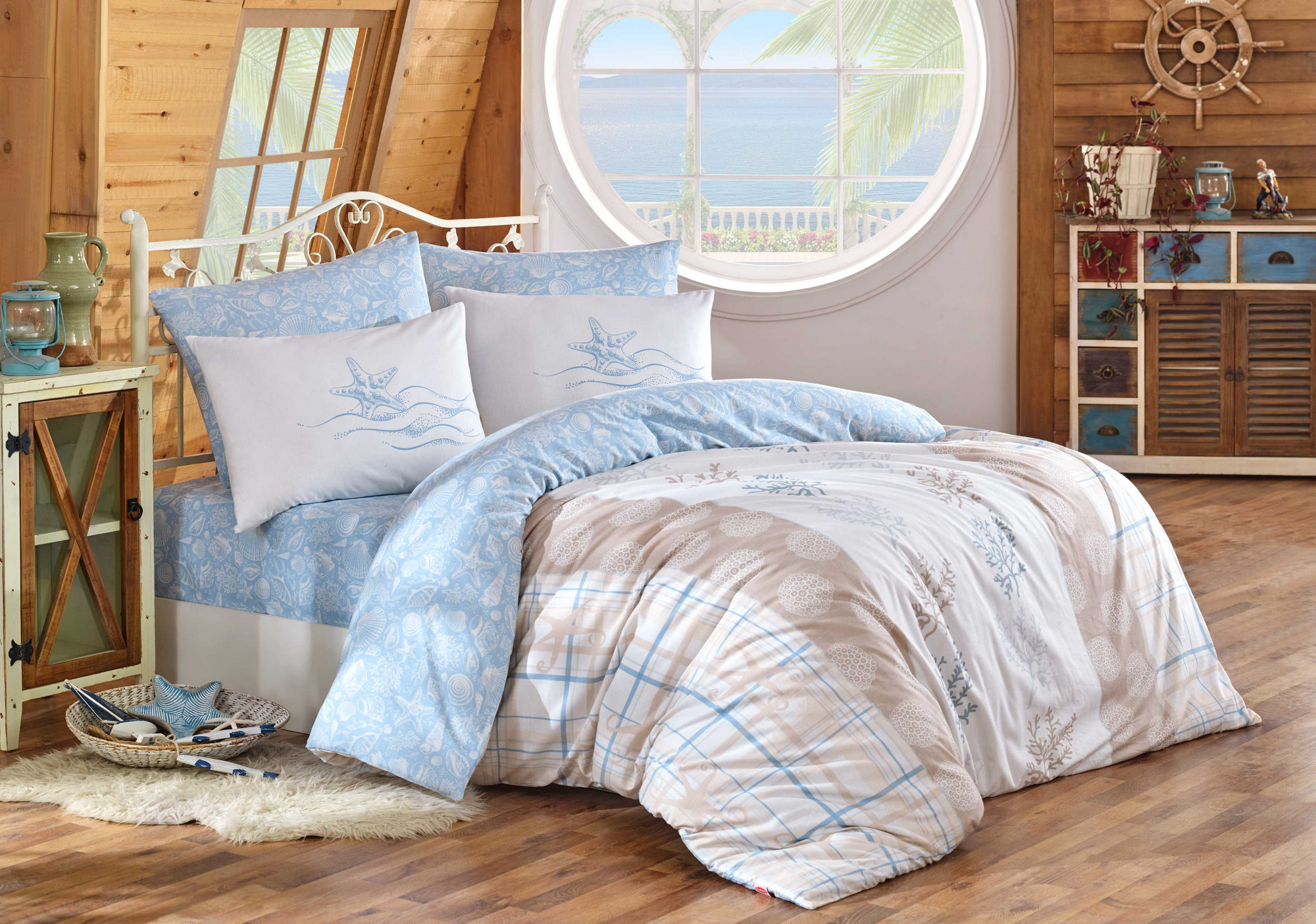 Patalynės užvalkalų komplektas Mijolnir Fulvia 113HBY2694, balta/kreminė/mėlyna, 200 x 220 cm | Interjeras, baldai, tekstilė | Senukai.lt | 0