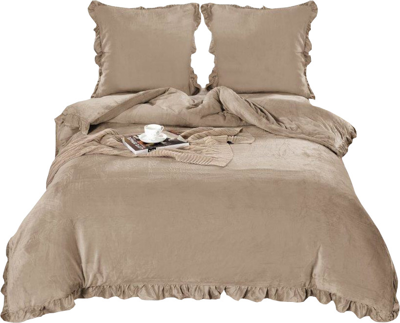 Vienspalvė patalynė pagaminta iš malonaus liesti audinio, turinčio minkšto pledo tekstūrą. Patalynė aksominė, labai minkšta liesti ir šilta. Papuošta volanėliais. Puikiai tinka vėsesniems vakarams. Sudėtis: 100% poliesteris. Matmenų tolerancija: +/- 3%. Patalynę galima skalbti iki 40ºC temperatūroje, išsamios priežiūros instrukcijos pateiktos etiketėje.