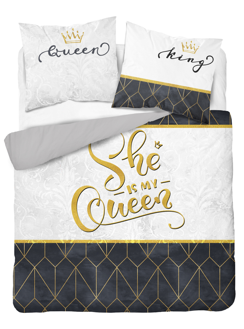 Kalėdinis patalynės užvalkalų komplektas SJC-155, aukso/raudona/tamsiai mėlyna, 160 x 200 cm