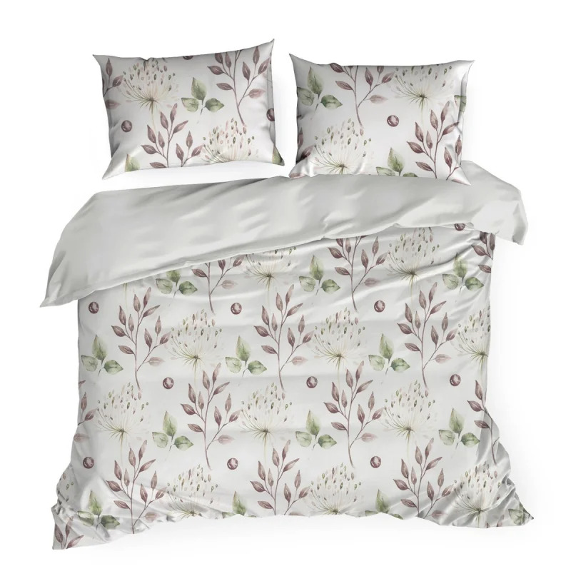 Sonia patalynės komplektas pagamintas iš aukštos kokybės medvilnės audinio , malonus liesti ir orinis . Patalynės privalumas - jos patvarumas ir lengvumas, taip pat puikus terminis komfortas . Medžiaga maloniai apgaubia kūną, užtikrindama visos nakties poilsį. Šiuolaikinės dažymo ir spausdinimo technologijos leidžia išlaikyti ilgalaikę spalvą ir spalvų sodrumą, nepaisant pakartotinių skalbimų. Dvipusis komplektas išsiskiria moderniu spaudiniu, vaizduojančiu augalų motyvą baltame fone, o apatinė patalynės pusė yra vientisa.