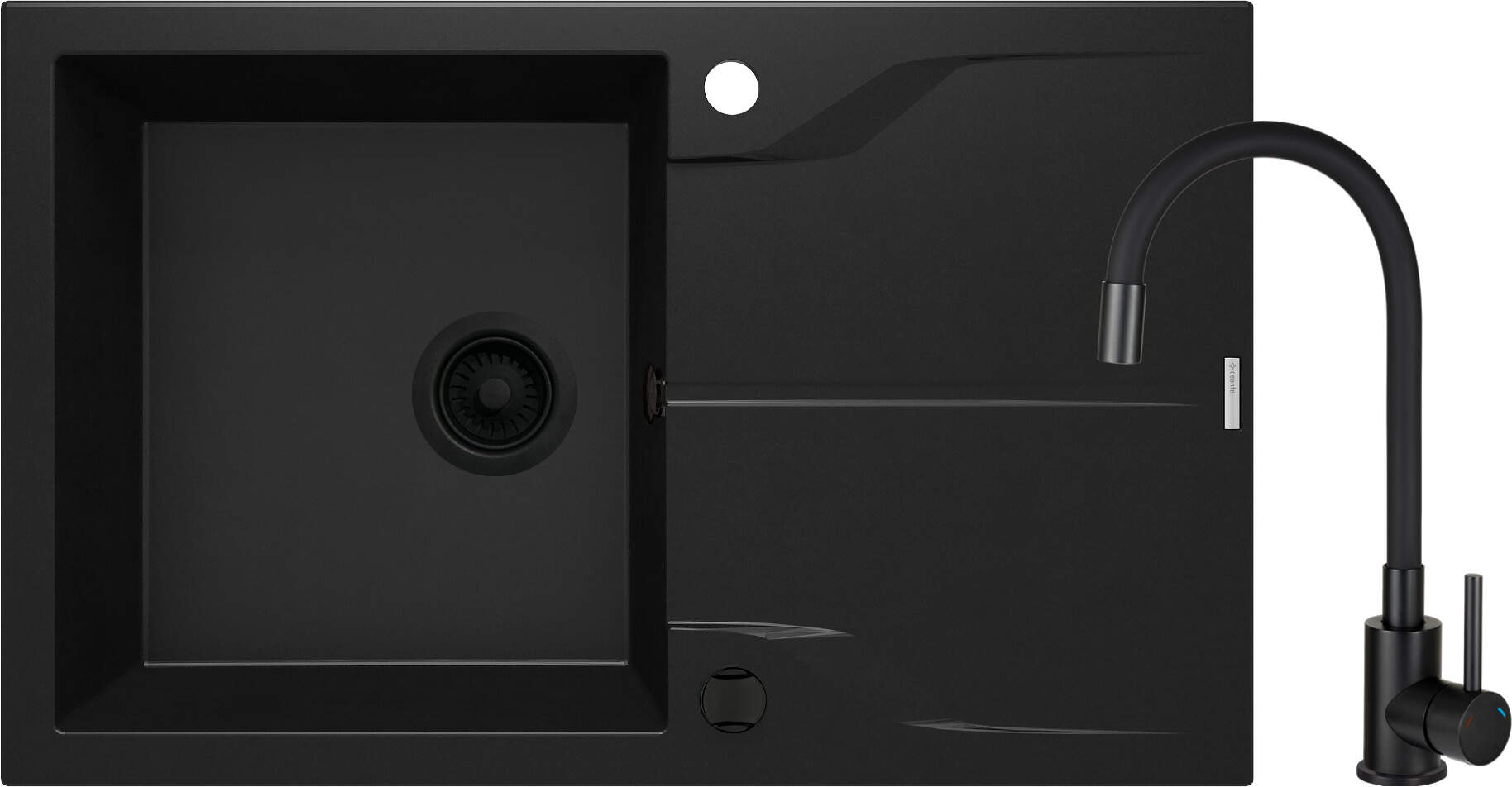 Virtuvinė plautuvė Deante Andante ZQN N113, granitas, 78 cm x 49 cm x 19.4 cm, juoda