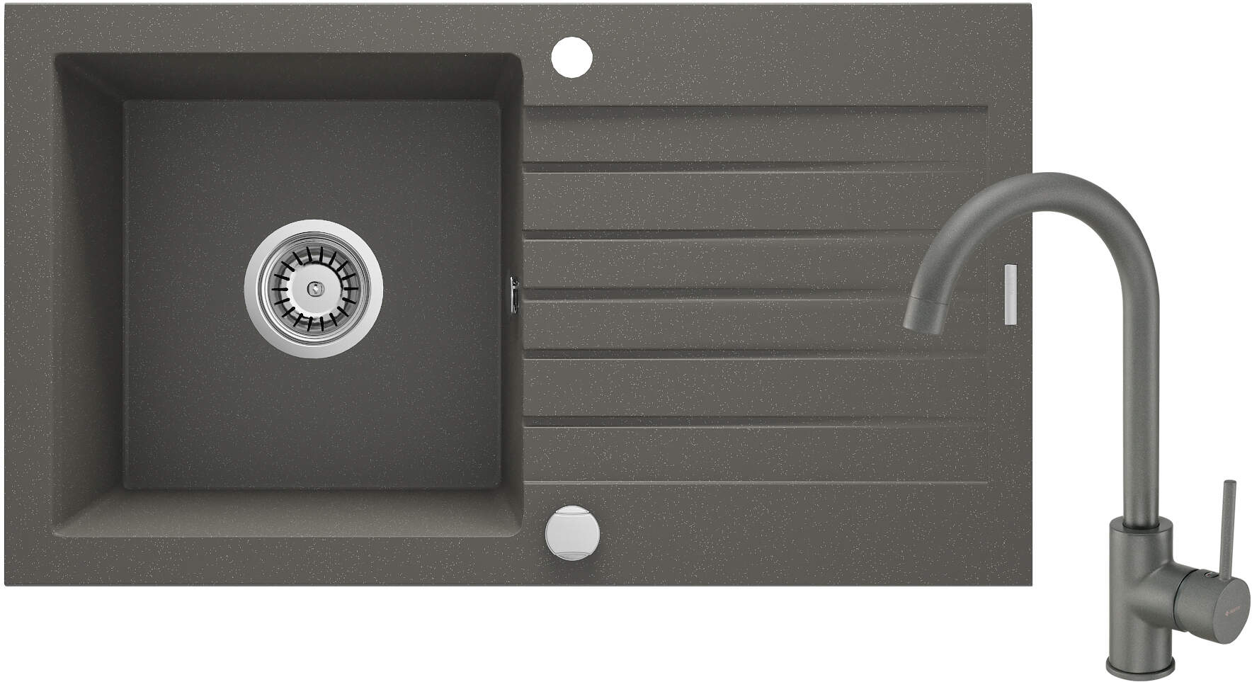 Virtuvinė plautuvė Deante Zorba ZQZ T203, granitas, 78 cm x 43.5 cm x 16.5 cm, tamsiai pilka