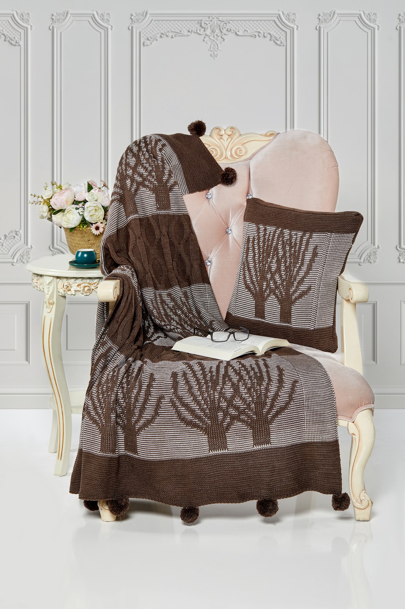 Pledo ir pagalvės komplektas Mijolnir Ponpon Tree 303EVN1192, rudas, 130 cm x 170 cm | Interjeras, baldai, tekstilė | Senukai.lt | 0