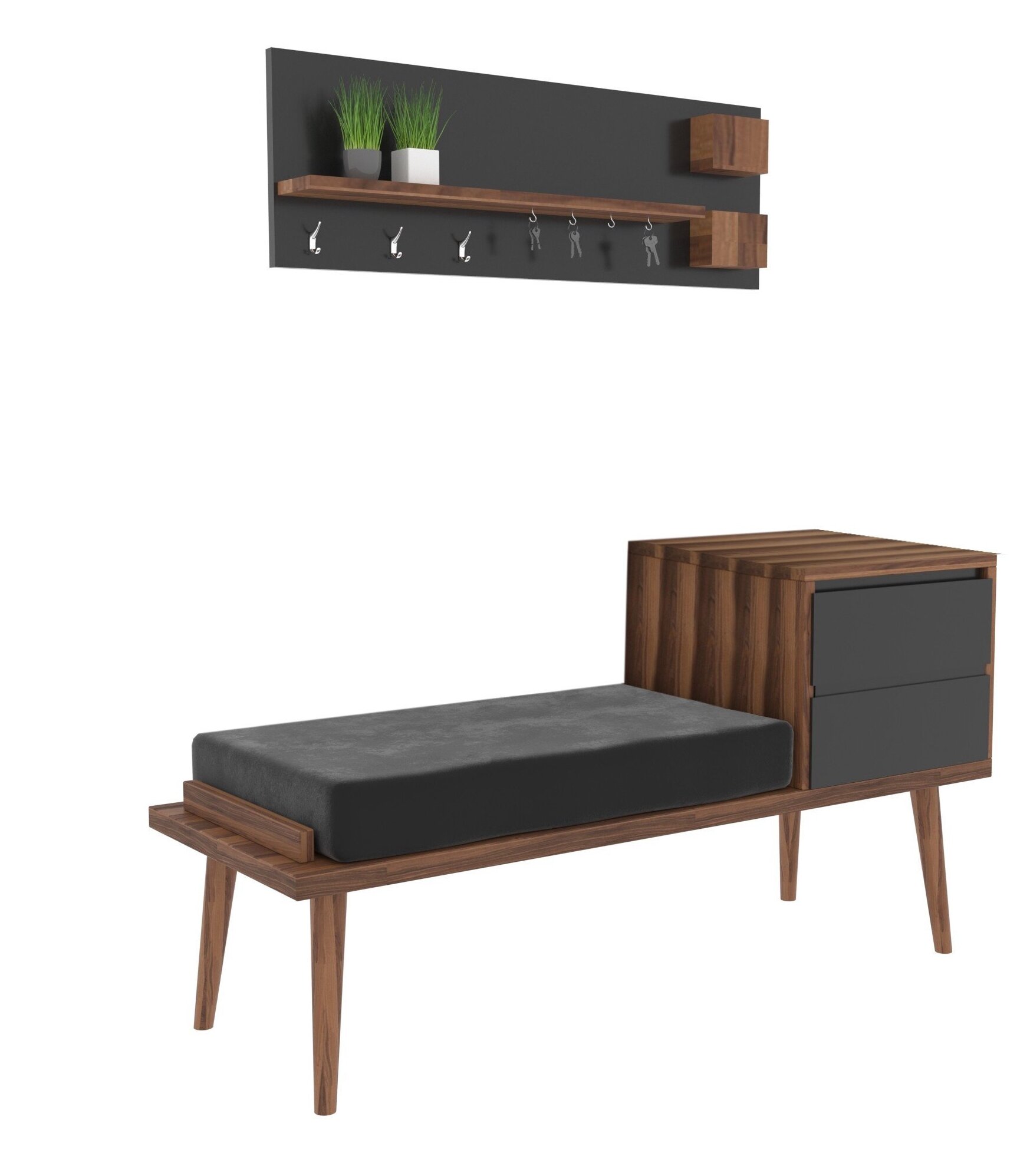 Sieninė lentyna: 80 x 8,5 x 30 cm, Suoliukas su lentyna: 120 x 45 x 74,5 cm.