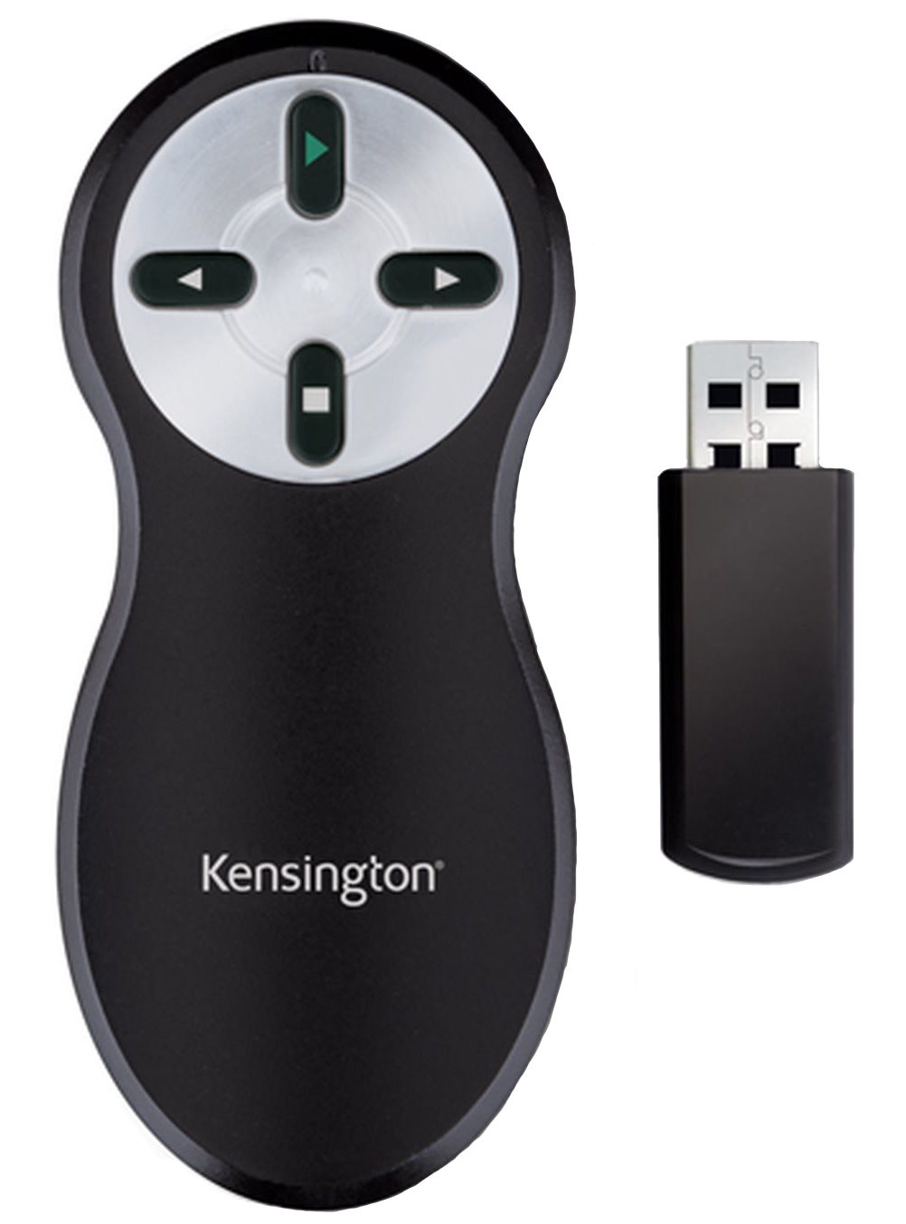 Kensington Presenter Remote Wireless Remote leidžia jums išlaikyti kontrolę savo Kensington Wireless Presenter leidžia jums išlaikyti kontrolę savo prezentacijai iš iki 65 pėdų atstumo. Patogus nešioti ir lengvai naudojamas, jis atlaisvina jus nuo blaškymosi ir leidžia sutelkti dėmesį į tai, kas iš tikrųjų svarbu - jūsų auditoriją.
