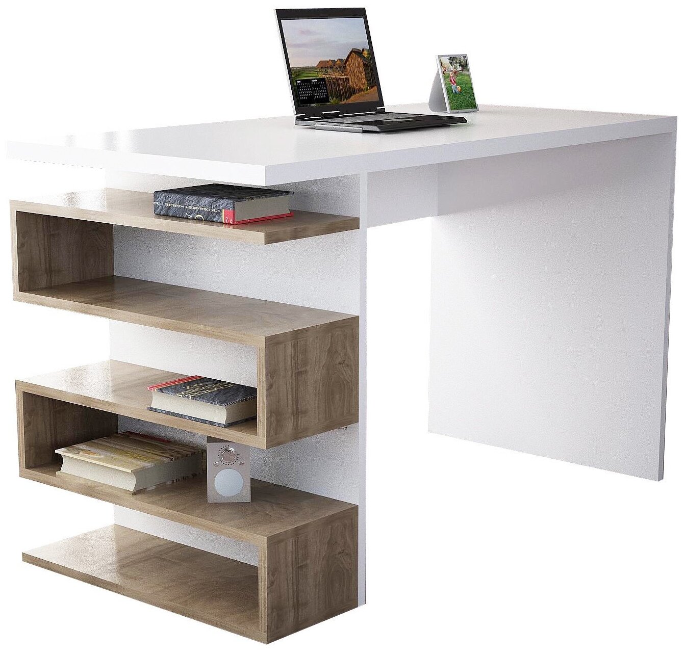 Pastatoma lentyna Kalune Design Reward 745DCD3615, balta/riešuto, 19.5 cm x 121.8 cm x 120 cm