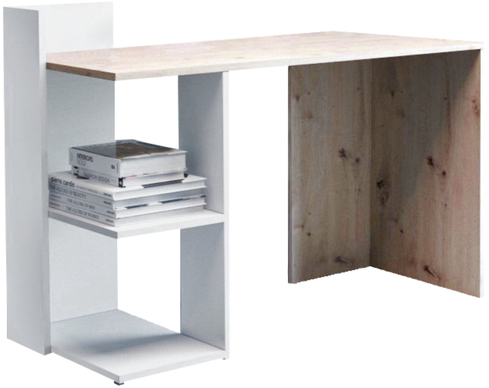 Rašomasis stalas Paco PC-03, balta/smėlio ruda