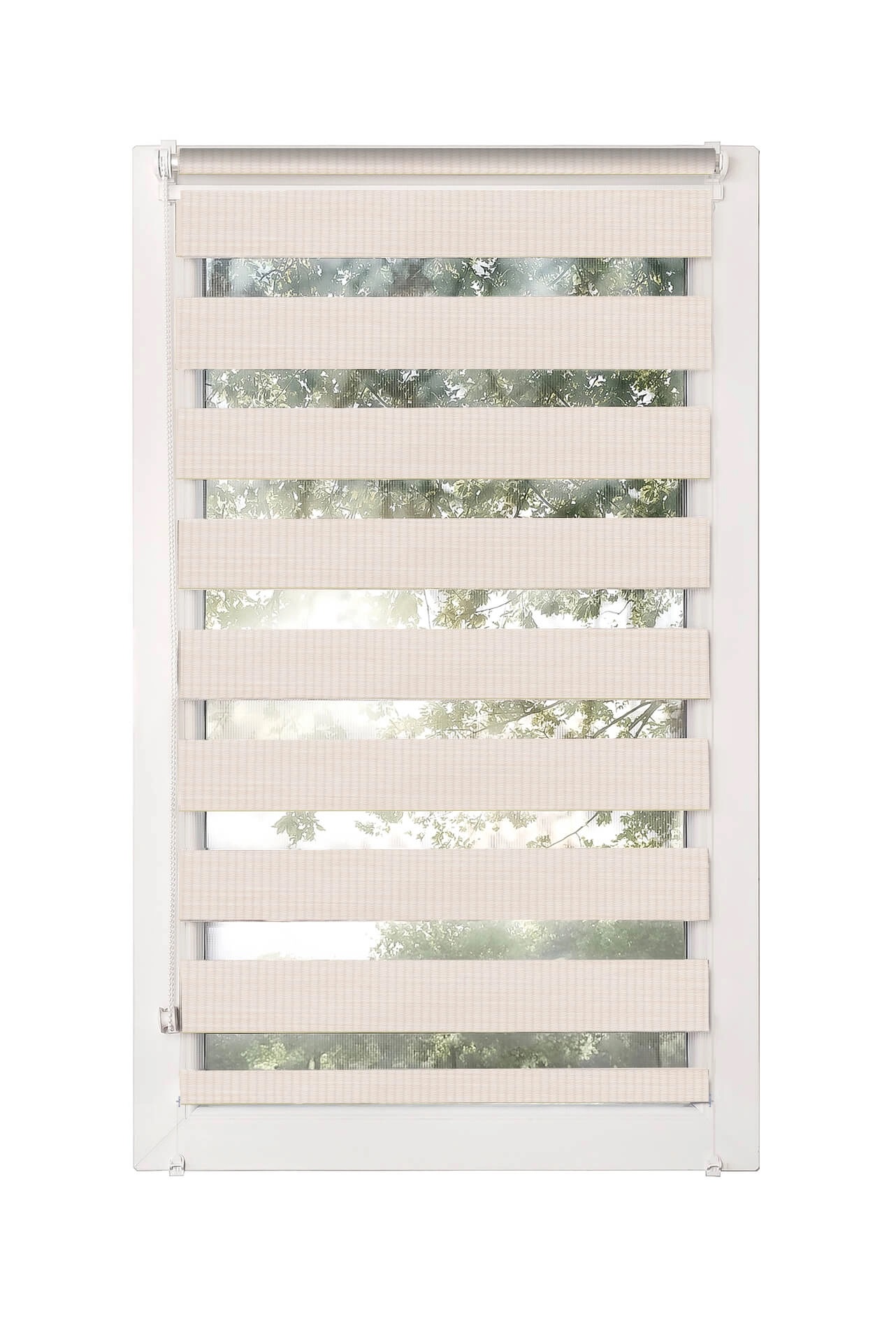 • Dienos ir nakties audinys leidžia reguliuoti šviesos kiekį, patenkanti į vidų, dėka dviejų lygiagrečių medžiagos sluoksnių ir kaitaliojamų juostų (tamsinančių ir skaidrių).
