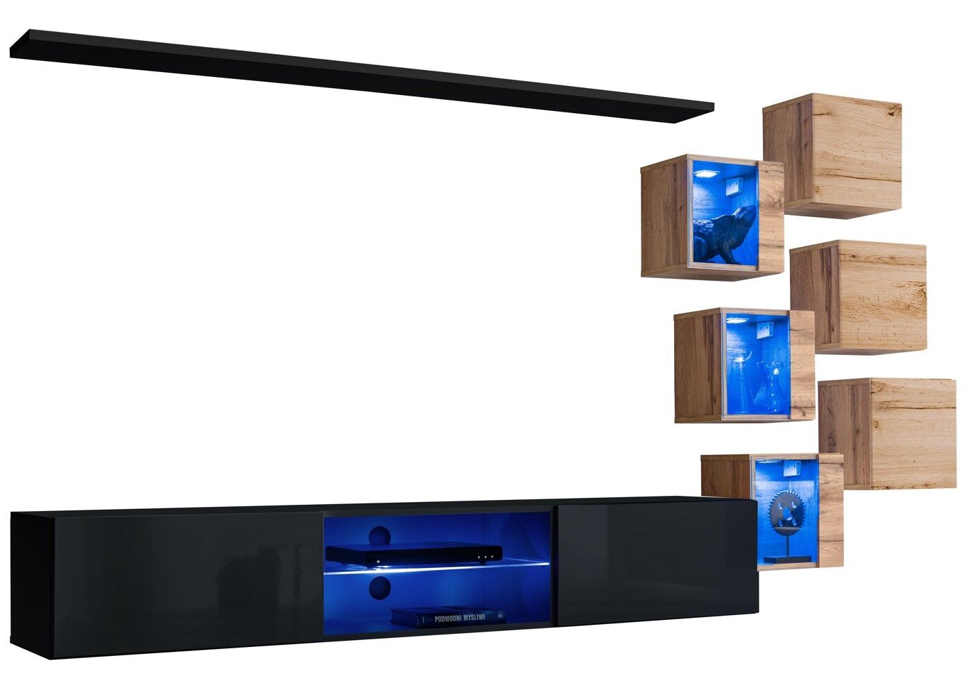 Sekcija ASM Switch XXI, ąžuolo/juoda/skaidri, 260 cm x 40 cm x 140 cm | Interjeras, baldai, tekstilė | Senukai.lt | 0