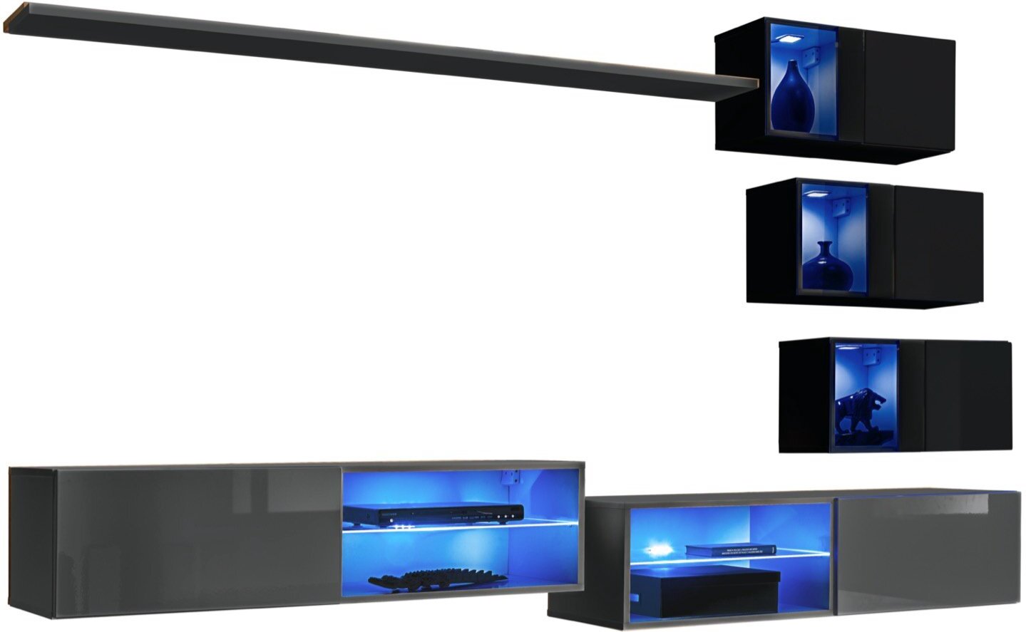 Svetainės baldų komplektas ASM Switch XXI, vidaus, grafito/juoda/tamsiai pilka