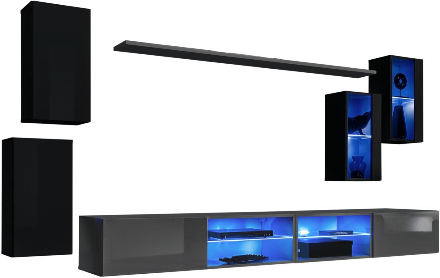 Svetainės baldų komplektas ASM Switch XXVI, vidaus, grafito/juoda/tamsiai pilka