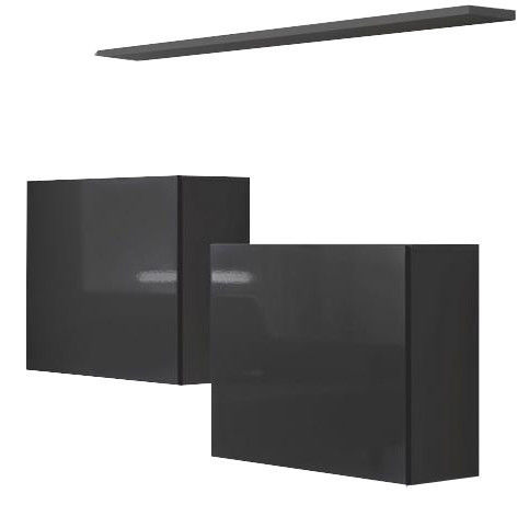 Atidarymo sistema Push-Click. Ilgos lentynos dydis: 120 x 2.2 x 20 cm Komplekte yra tik 2 sieninės spintelės ir sieninė lentyna, kiti interjero dizaino daiktai neparduodami.