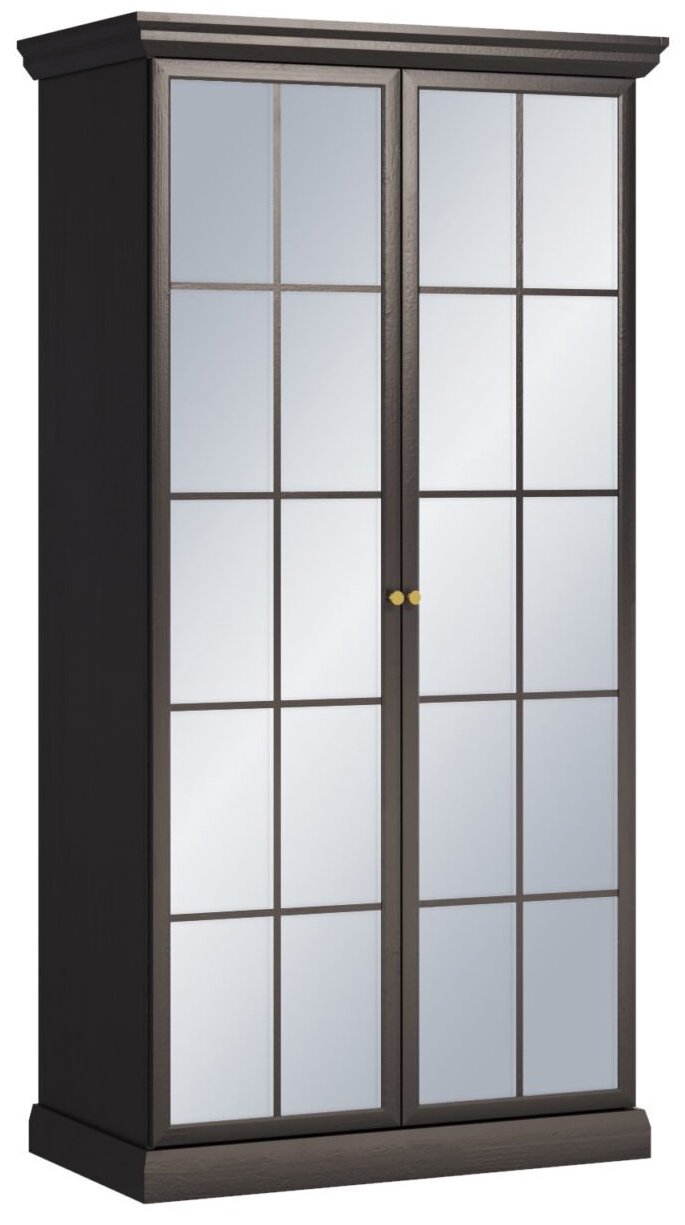 Praktiška drabužių spinta su veidrodinėmis durelėmis, optiškai išplečiančiomis namų erdvę. Viduje dvi lentynos ir drabužių kabykla. Gausiai dekoruoti vainikai ir cokoliai, metalinės rankenos taurios aukso spalvos. Juodas dekoras su giliomis natūralios medienos poromis, turintis skirtingus blizgesio laipsnius, atrodo itin dinamiškai ir labai įvairiai, puikiai derindamas natūralų grožį. Lucca kolekcijos estetika leidžia laisvai derinti klasiką ir modernų stilių.