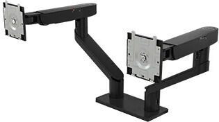 Dviguba „Dell“ monitoriaus rankena padeda optimizuoti jūsų stalo erdvę mažu pėdsaku. „C“ spaustukas idealiai tinka stalo kraštams, o grommetiniam tvirtinimui tereikia 2 colių skylės, kad būtų galima pritvirtinti iki 27 colių dydžio monitorius.