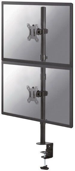 Neomounts FPMA-D550DVBLACK yra juodas, pakreipiamas, pasukamas ir apverčiamas stalo laikiklis, skirtas vertikaliai montuoti du plokščius ekranus, kurių dydis svyruoja nuo 10" iki 32" (nuo 25,4 cm iki 81,3 cm). Šis stalo laikiklis yra puikus pasirinkimas norint sutaupyti vietos ant stalų, naudojant stalo spaustuką arba įvorės tvirtinimą.