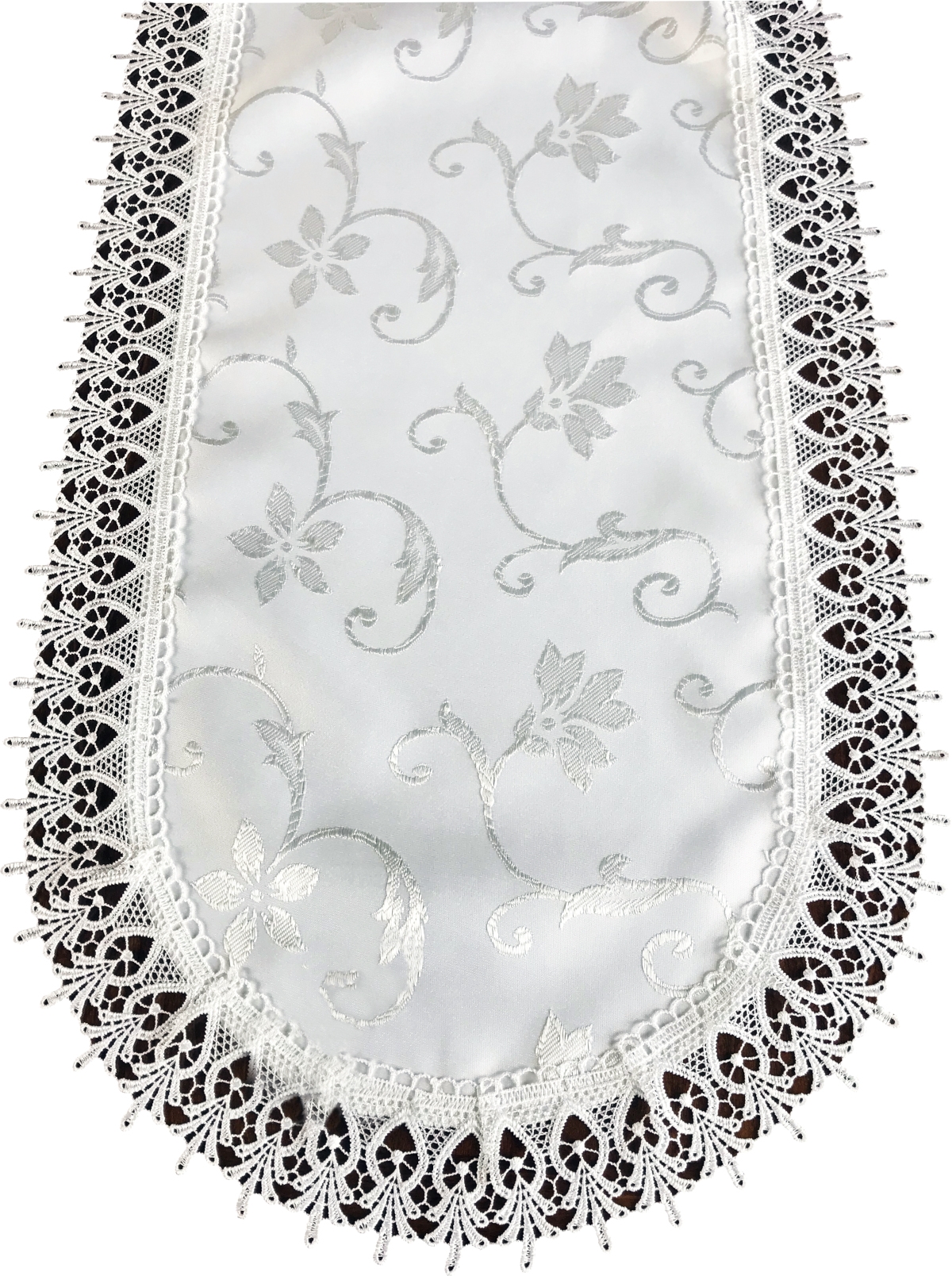 Stalo takelis pagamintas iš atsparaus dėmėms audinio, apdailintas ir papuoštas gipiūru, 20 cm pločio. Jis turi anti-dėmių savybių, todėl yra labai praktiškas ir lengvai naudojamas. Atkreipkite dėmesį, kad kompiuterio ekranai spalvas rodo pagal individualius nustatymus ir savybes. Matmenų tolerancija: +/-5%.