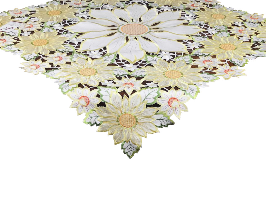 Staltiesė kvadratinė, balta/geltona, 85 x 85 cm
