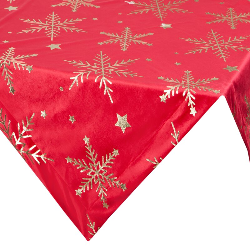 Šis šventinis aksominis stalo užtiesalas ryškiai raudonos spalvos yra įspūdingas dekoratyvinis elementas, kuris suteiks šiltą ir džiaugsmingą atmosferą bet kuriam interjerui. Minkšta, maloni liesti medžiaga yra papuošta aukso spalvos raštu, vaizduojančiu dideles snaiges ir mažas žvaigždutes, kurios subtiliai žvilga šviesoje, suteikdamos stalui elegantišką ir spindinčią išvaizdą. Aksominė tekstūra suteikia užtiesalui prabangų įvaizdį, taip pat apsaugo stalo paviršių ir sukuria puikų foną šventiniams indams ir dekoracijoms. Puikiai tinka Kūčių vakarienei, šeimos susibūrimams ar žiemos vakarėliams. Atkreipkite dėmesį, kad spalvos gali skirtis priklausomai nuo monitoriaus nustatymų. Skalbimo instrukcijos yra ant etiketės. Matmenų tolerancija +/- 5%.