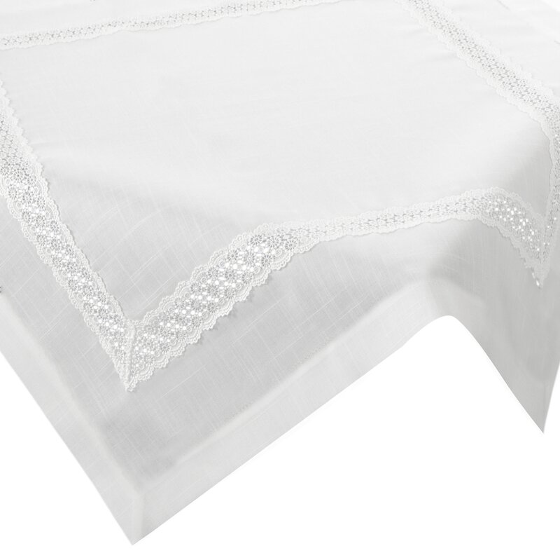 Dekoratyvinis užtiesalas su dekoratyviniais nėriniais plotis: 85 cm, ilgis: 85 cm, spalva: balta, Gramatūra: 180 GSM, Sudėtis: 100% poliesteris