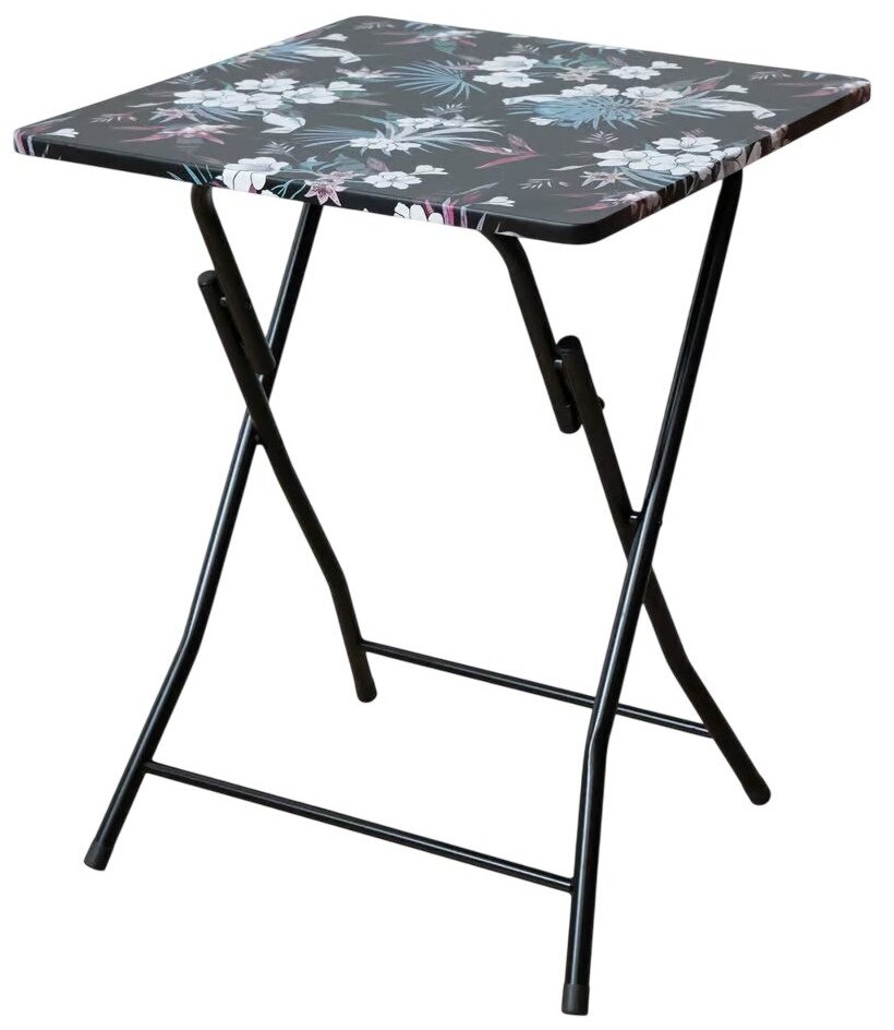 Atraskite neprilygstamą funkcionalumo ir stiliaus derinį. Mūsų turistinis staliukas patraukia akį tropiniu gėlių raštu ant elegantiško juodo fono. Tvirta plieninė konstrukcija, padengta patvaria milteline dažų danga, garantuoja gaminio ilgaamžiškumą. Stalo universalumas leidžia jam puikiai įsilieti į įvairią aplinką – nuo stovyklavietės iki balkono ar net vaikų kambario. Aukštos kokybės stalviršis, pagamintas iš MDF plokštės ir PVC, yra atsparus pažeidimams ir lengvai valomas. Sulankstoma konstrukcija leidžia sutaupyti vietos, kai stalas nenaudojamas.