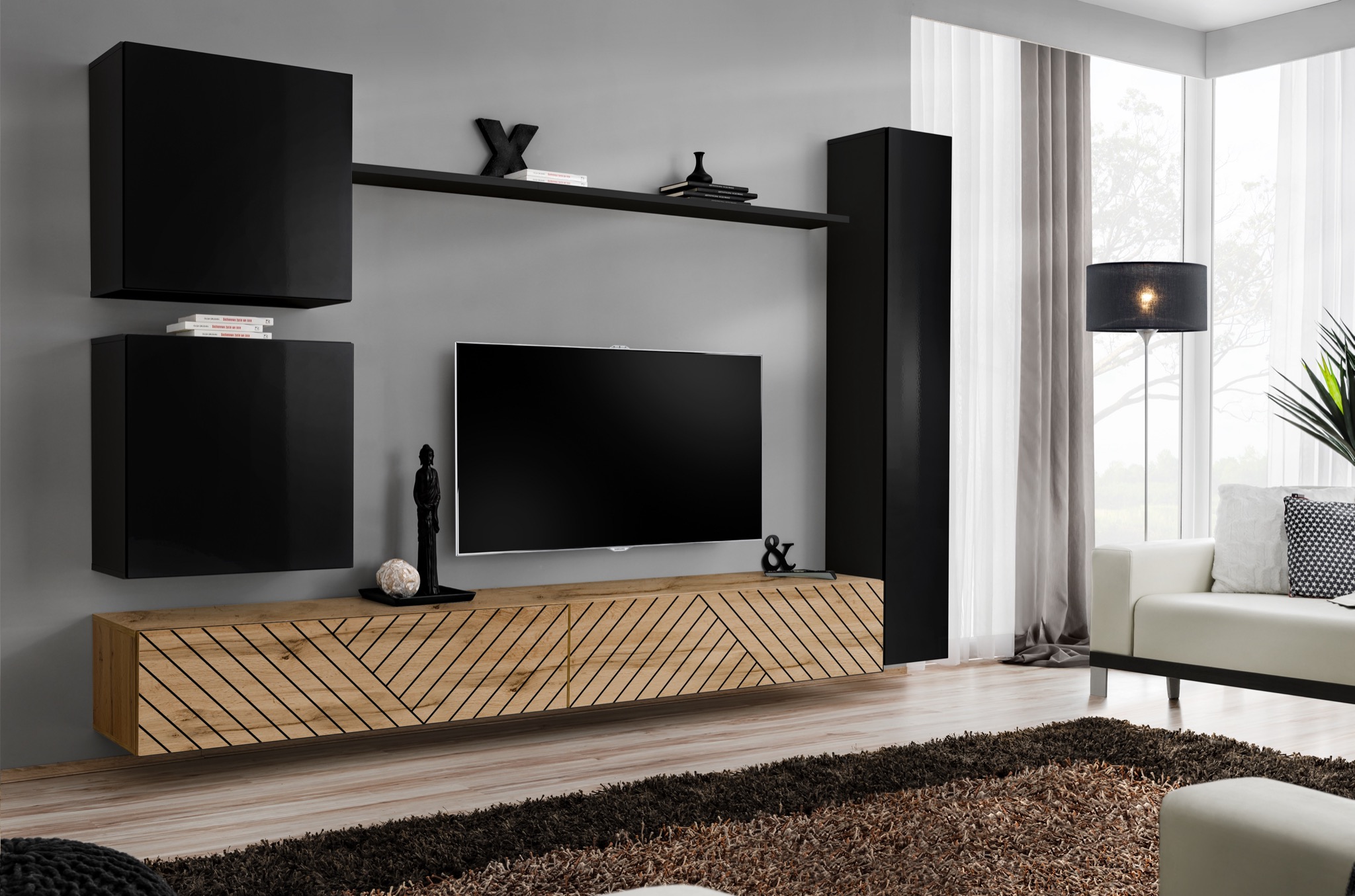 Svetainės baldų komplektas ASM Switch VIII Switch VIII, ąžuolo/juoda/šviesiai ruda