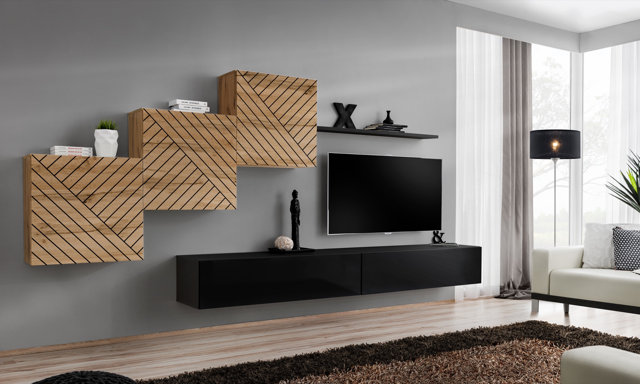Svetainės baldų komplektas ASM Switch XX Switch XX, juoda/pilka/tamsiai pilka
