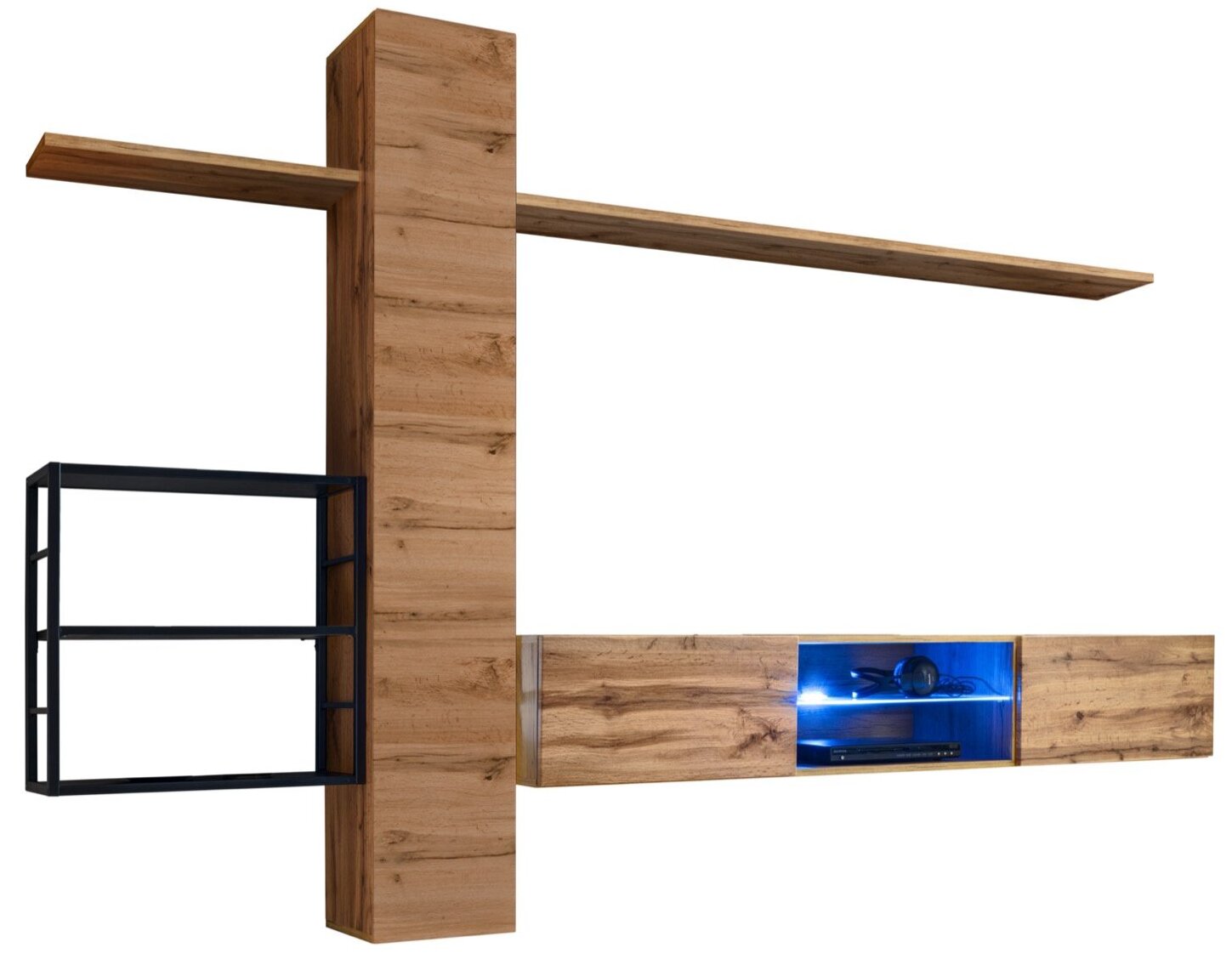 Sieninės lentynos matmenys PW3: 60x2,2x20 cm; Sieninės lentynos matmenys PW1: 180x2,2x20 cm; Pakabinamos spintelės matmenys SW1: 30x180x30 cm; RTV3 televizoriaus spintelės matmenys: 180x30x40 cm; Sieninės lentynos matmenys RM3: 60x60x25 cm