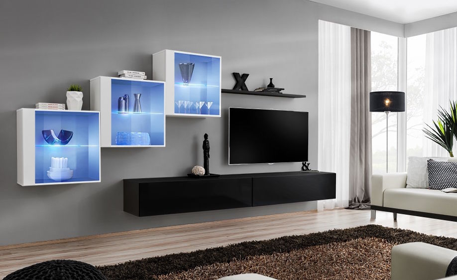 Televizijos stalo RTV 2: 120 x 30 x 40 cm Pakabinama lentyna PW 2: 120 x 2.2 x 20 cm Vitrina WW 3: 60 x 60 x 30 cm
