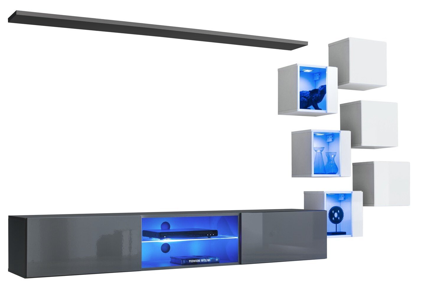 Svetainės baldų komplektas ASM Switch XV Switch XV, balta/pilka/tamsiai pilka