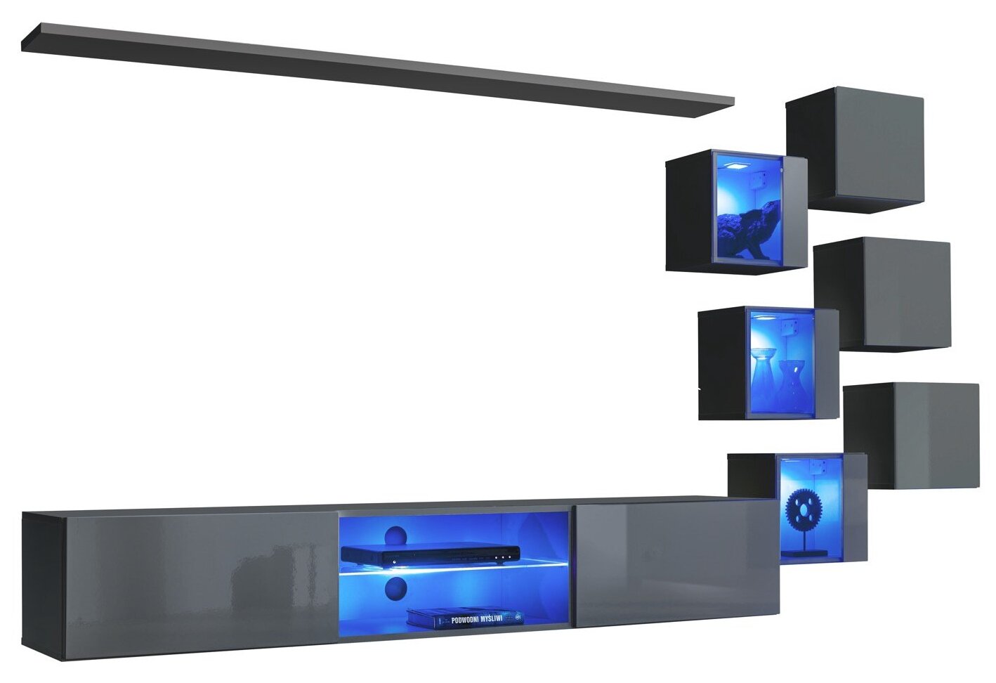Svetainės baldų komplektas ASM Switch XX Switch XX, juoda/pilka/tamsiai pilka