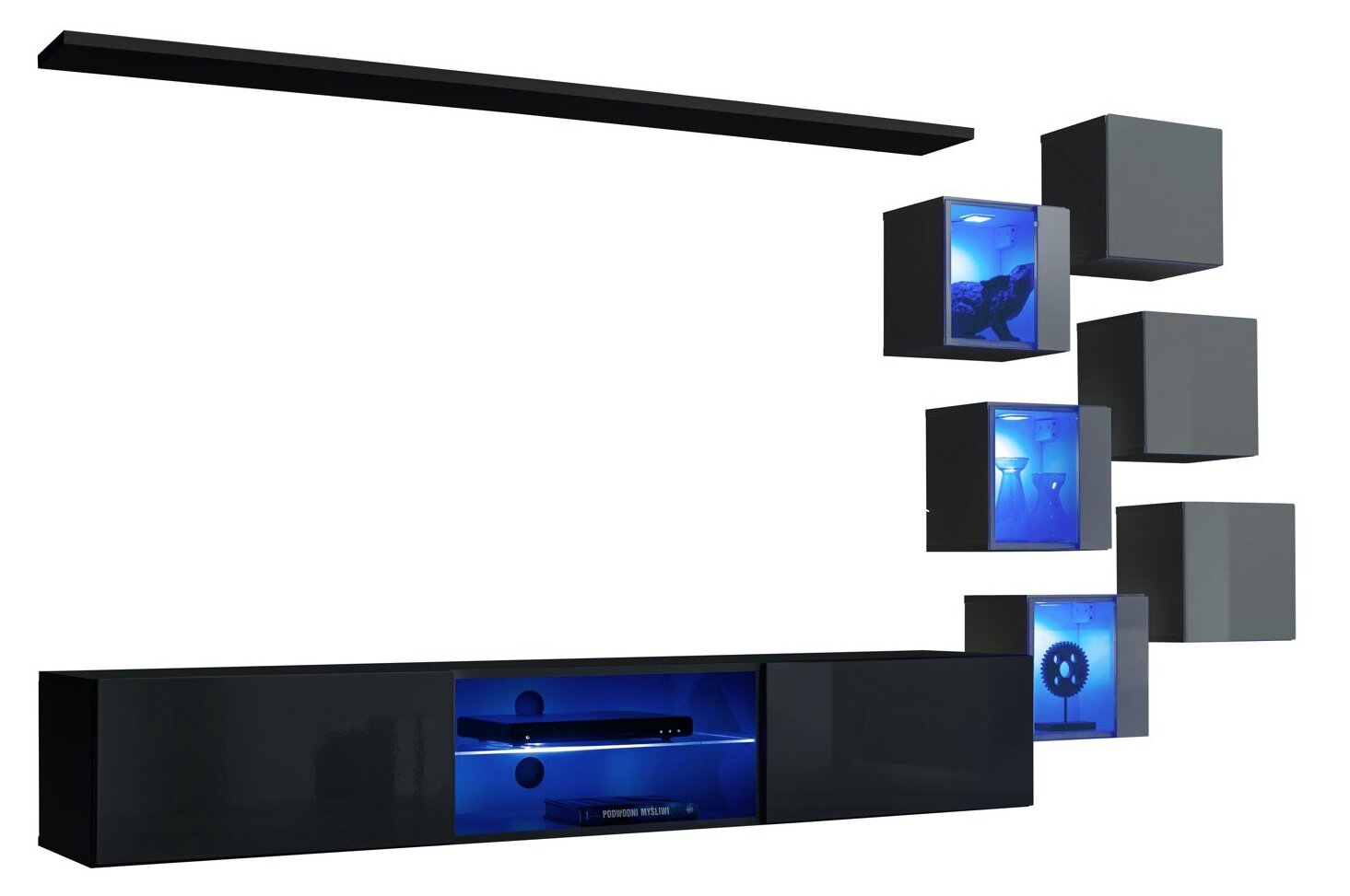 Svetainės baldų komplektas ASM Switch XXI, vidaus, juodas/grafito