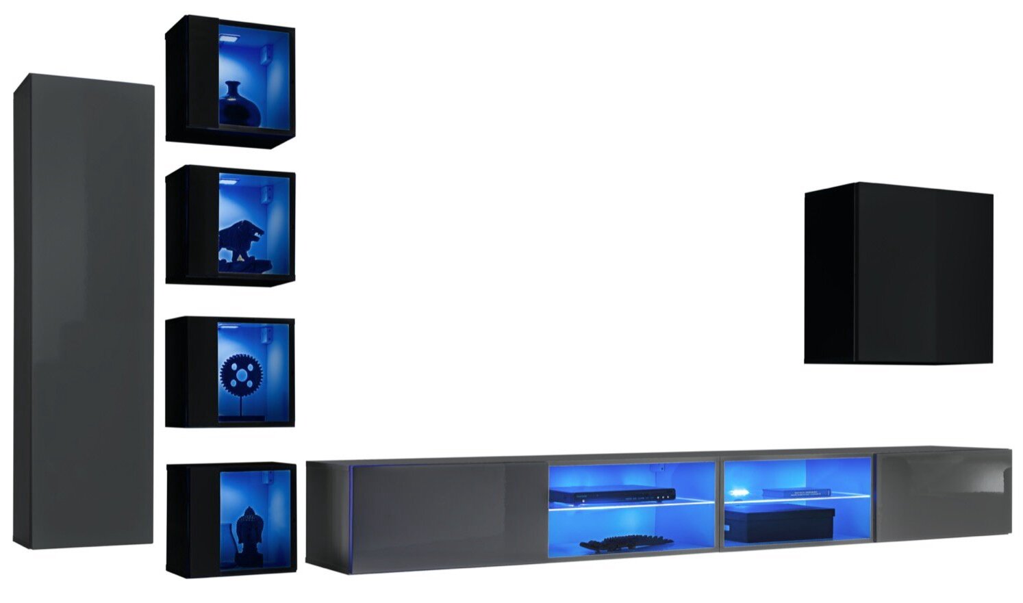 Svetainės baldų komplektas ASM Switch XV Switch XV, balta/pilka/tamsiai pilka