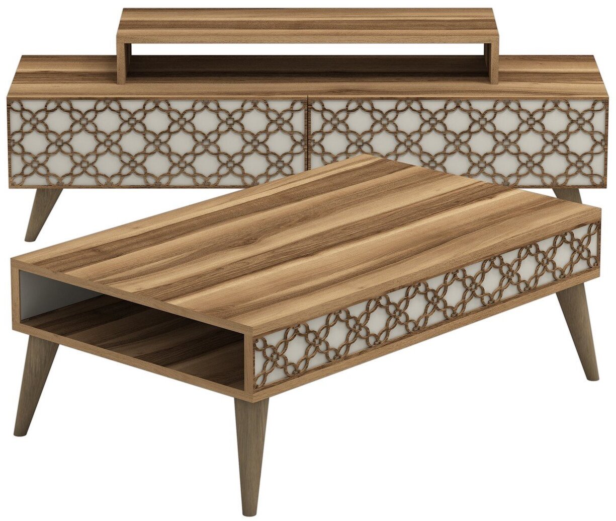 Svetainės baldų komplektas Kalune Design Ayaz, vidaus, balta/ruda/smėlio