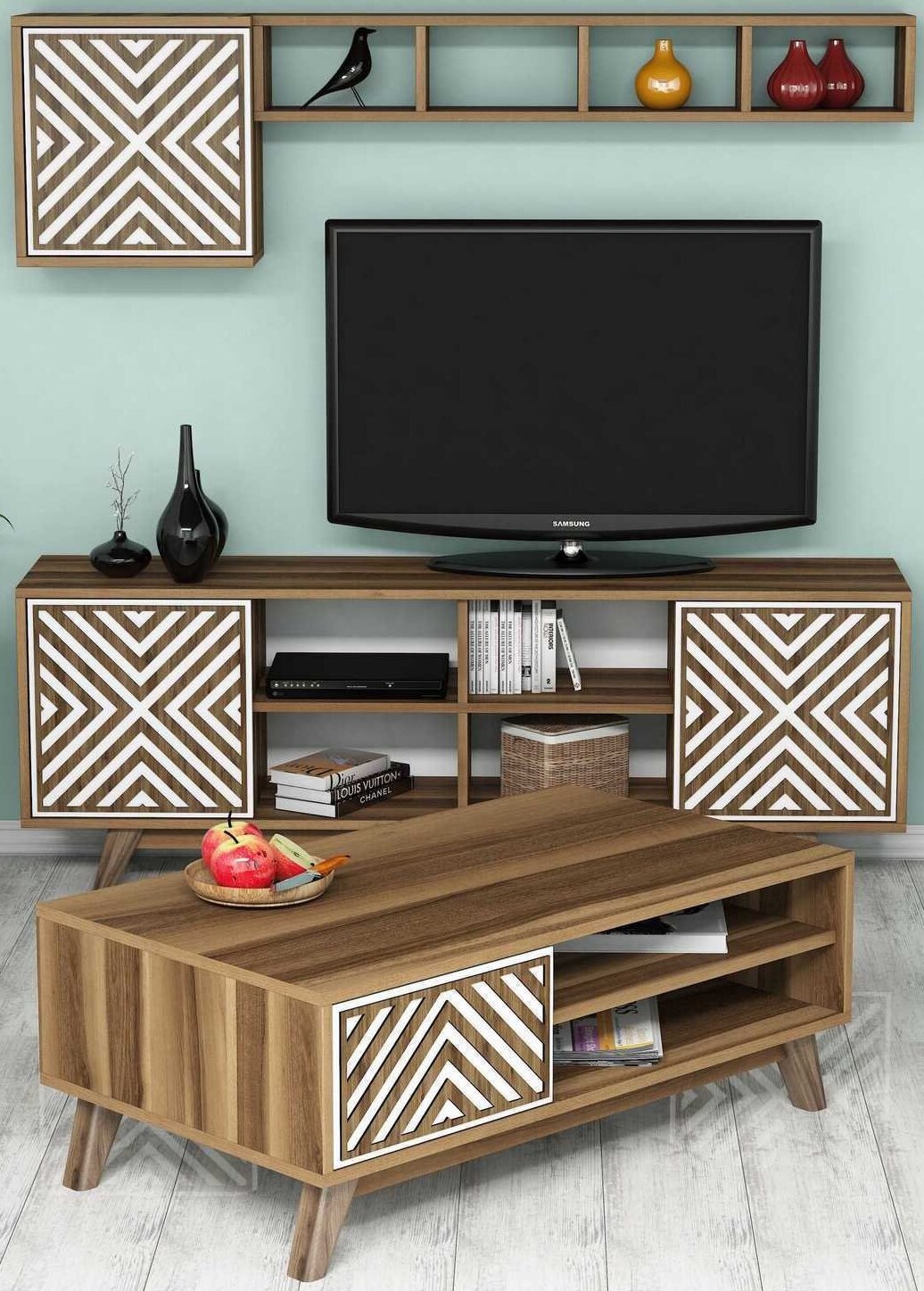 SVETAINĖS BALDŲ KOMPLEKTAS KALUNE DESIGN İNCI, VIDAUS, BALTAS/RIEŠUTO