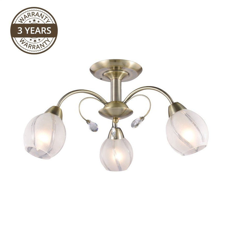 Prie lubų tvirtinamas modernaus stiliaus lubinis šviestuvas Domoletti CL16049-3 yra tai, ko galbūt trūksta jūsų miegamojo, svetainės ar kito kambario interjere. Tai yra vidutinio dydžio šviestuvas, pagamintas iš žalvario spalvos metalo ir matinio baltos spalvos stiklo. Dėl neutralios spalvų paletės, jis gali gerai atrodyti daugumos stilių interjeruose.