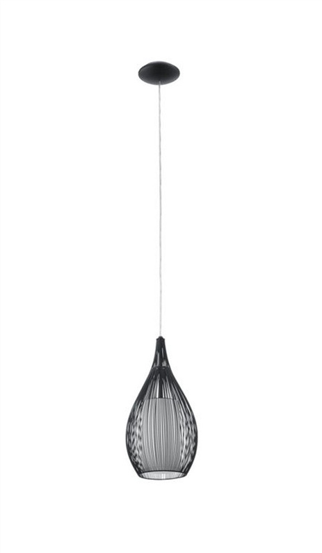 Stilinga ir moderni pakabinama lubų lempa su juodo metalo korpusu ir stiklo gaubtu, kuri bus funkcionalus šviesos šaltinis vidaus patalpose. Lempai bus reikalinga viena kaitrinė 60W lemputė su lizdu E27, kuri nepridedama ir ją reikia įsigyti atskirai. Lempos dydis: 19x19x110cm. Įtampa: 230V.