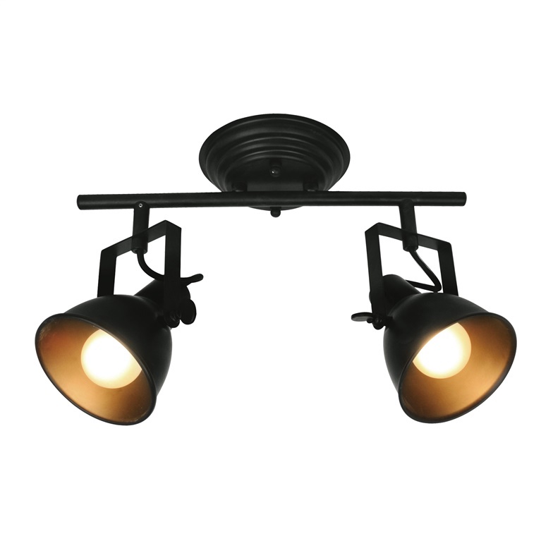 Stilinga ir moderni pritvirtinama lubinė lempa su juodu metaliniu korpusu ir gaubtu, kuri bus funkcionali šviesos šaltinis patalpose. Lempai reikės dviejų 40W kaitrinių lempučių su E14 lizdu, kurios nėra pridėtos ir turi būti perkamos atskirai. Lempos dydis: 36x13x20cm. Įtampa: 230V.