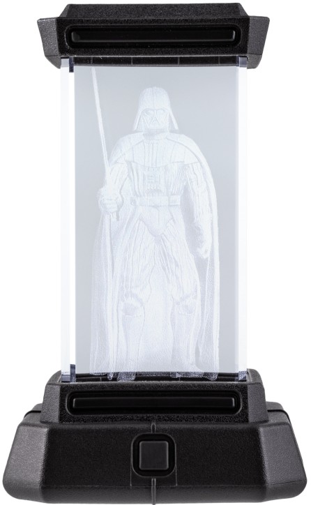 Grėsmingasis Sith Lordas yra pavaizduotas lazeriu išgraviruotame kristale ir apšviestas iš apačios grėsmingais šviesos diodais. Galite mėgautis Darth Vader 3 apšvietimo režimais – Pasipriešinimo mėlyna, Imperijos raudona arba perjungti juos su nuostabiu fazių režimu. Šis nuostabus šviestuvas taip pat turi apšviestą Žvaigždžių Karų logotipą viršuje.