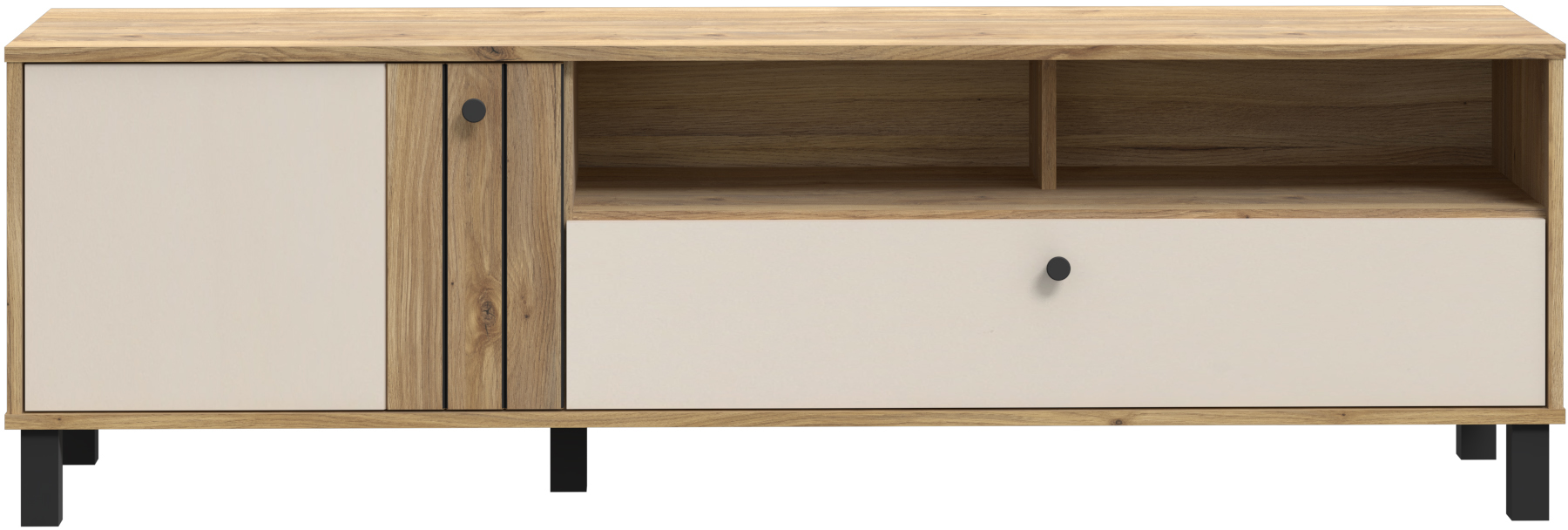 TV staliukas Forte Trondheim, ąžuolo/juoda, 41.5 cm x 158.4 cm x 58.9 cm