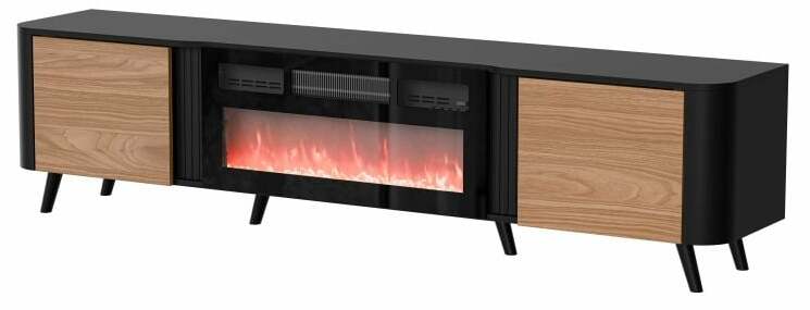 TV staliukas Cama Meble Volare, juoda/lazdyno riešuto, 200 cm x 39 cm x 49 cm